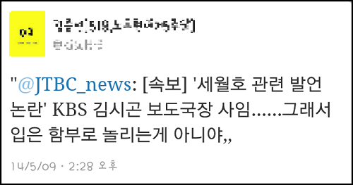 길 사장은 김시곤 보도국장의 발언에 대해 “유가족께 진심어린 사과를 드린다”면서 “보도국장이 의도하지 않았던 발언에 큰 슬픔과 물의를 일으켰다며 사의를 표했다”고 전했다.