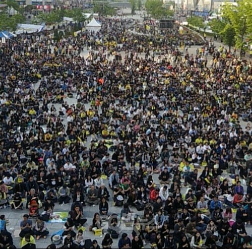 34개 안산지역 시민단체 주최로 세월호 희생자 추모를 위한 촛불집회가 안산 문화광장에서 진행되고 있다.