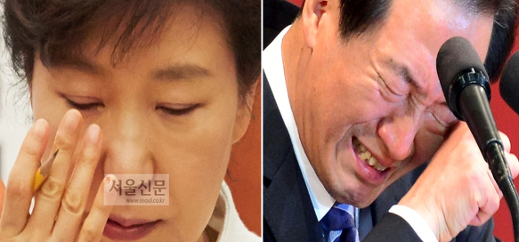 통곡이 넘쳐나던 사고 현장이 아니라 청와대로 유가족 대표들을 부른 자리에서다. 유가족의 슬픔과 간절함이 생생하게 전달되던 팽목항에서는 결코 눈물을 보이지 않던 그가 엄숙하고 근엄하게 연출된 공간인 청와대에서 운 것이다.