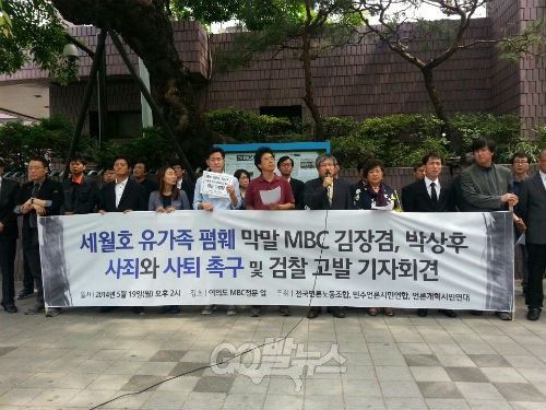 19일 전국언론노동조합, 민주언론시민연합, 언론개혁시민연대 등 3개 언론단체는 서울 여의도 MBC 정문 앞에서 기자회견을 열고 “막말 파문 당사자들이자 파행보도 책임자인 두 사람의 책임을 물어야 한다”며 “기자회견을 마친 후 서울남부지검에 고발장을 제출할 것”이라고 밝혔다.