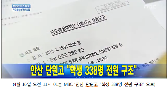 MBC가 세월호 침몰 참사와 관련 ‘전원구조 오보’를 촉발했다는 것이 알려져 논란이 일고 있는 가운데 21일 국회에서 열린 2차 본회의 세월호 참사 긴급현안질의에서는 공영방송의 오보 문제를 비롯, ‘청와대 보도개입설’에 대한 문제가 집중 거론됐다.