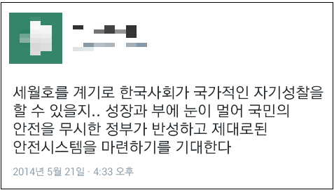 또한 “한국은 경제 성장을 쫓는 과정에서 안전을 무시했을 뿐더러 다른 사회적 병폐에도 눈을 감았다”라며 “지난 20년간 선진국 대열에 올랐지만, 자살률은 3배 이상으로 늘고, 65세 이상 국민의 절반이 빈곤한 생활을 하고 있다”고 덧붙였다.