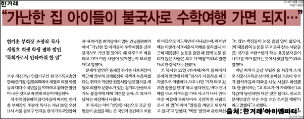 한겨레 보도에 따르면 한국기독교총연합회(한기총) 임원회의에서 세월호 희생 학생과 국민을 비하하는 발언이 나왔다고 합니다.