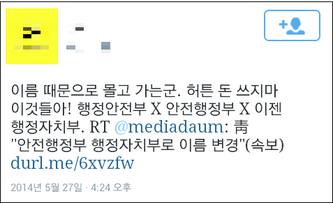 해당 소식을 접한 네티즌들은 정부의 쇄신없는 부서 이름 바꾸기식 대응에 비난의 목소리를 높였다. 네티즌들은 “부서 이름 바꾸는데 허튼 돈 쓰지마라”(@sin***), “조사모사도 원, 국민을 원숭이로 아나?”(@balt***), “옷만 바꿔입는게 아니라 부서 이름도 정신 없이 바꾸네”(@writer****) 등의 다양한 반응을 보였다.