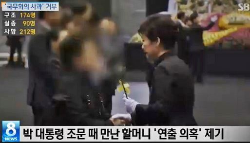 <한겨레>는 세월호 침몰사고 현장에서 부모를 잃고 구출된 아이가 박 대통령을 만나는 사진을 기사화한 바 있다. 아이를 병원에서 데려와 연출한 장면일 수 있다는 누리꾼들의 의혹 제기를 ‘쇼크 상태였던 아이가 왜 박 대통령 현장 방문에?’라는 제하의 기사를 통해 보도한 것이다.