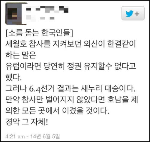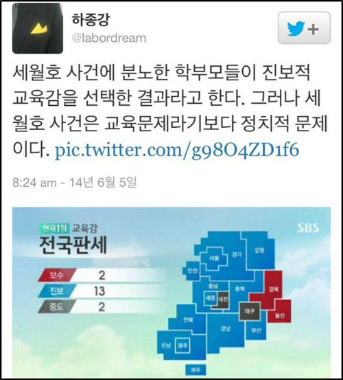 SNS에서는 이같은 결과와 관련 세월호 심판론을 제기하는 등 다양한 반응들을 보였다.