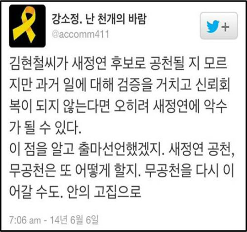 김 교수는 6일 자신의 SNS에 오는 7월 30일 치러지는 국회의원 재보궐 선거에 새정치민주연합 후보로 출마하겠다고 밝혔다.