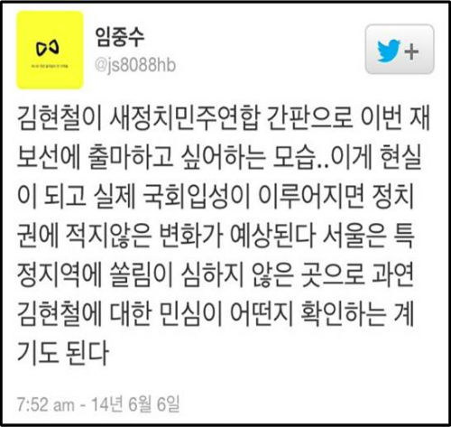 김현철 교수의 출마 소식에 네티즌들은 “이런 행동하는 속내를 모르겠네요”(흉**), “부산이나 기타 영남 지방에 내세워 봐야 가능성 있지 다른데는..”(미**), “새누리당에게 동작을을 주는 한이 있더라도 새정치의 최종 후보로는 안 나왔으면 좋겠네요”(성공나무***), “당선과 상관없이 여태까지의 발언들 보면 나쁘지 않은거 같은데.. 문제는 기존 민주당 지지자들의 반발이죠”(세*), “YS 그리워하는 사람들이 꽤 있는 걸로 아는데 그분들에겐 큰 효과가 있을 거 같다는 생각”(달과**) 등의 다양한 반응들을 보였다.