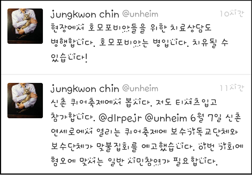이어 "현장에서 호모포비아들을 위한 치료상담도 병행합니다"라며 "호모포비아는 병입니다. 치유될 수 있습니다"고 적기도 했다.
