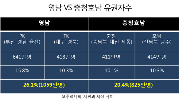 영호남 지역구도 변화, ‘영남 대 충호남’으로?