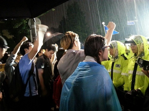 87년 6월 민주항쟁 27주년을 맞은 10일, 세월호 참사에 분노한 대학생‧시민들이 밤 11시 40분 현재 청와대 인근에서 빗속 규탄 대회를 이어가고 있다.