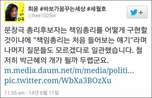 문창극 국무총리 후보자가 “책임총리 그런 것은 처음 들어본다”고 말해 야권과 네티즌들의 거센 비난을 받고 있다.