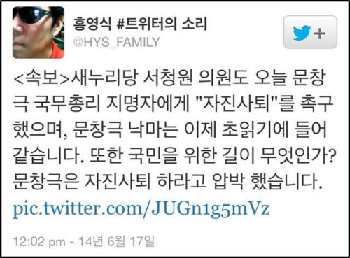 새누리당 유력 당권 주자인 서청원 의원이 문창극 국무총리 후보자에 대해 사실상 자진 사퇴를 촉구하고 나섰다.