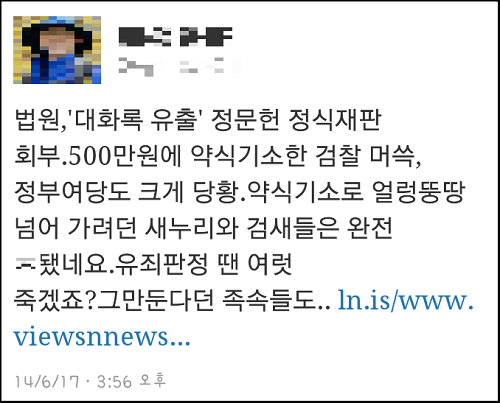 검찰은 앞서 대화록 유출 사건과 관련해 정 의원만 기소하고, 새누리당 김무성 의원과 권영세 주중대사는 모두 무혐의 처분을 내려 ‘봐주기 기소’ 논란을 일으켰다.