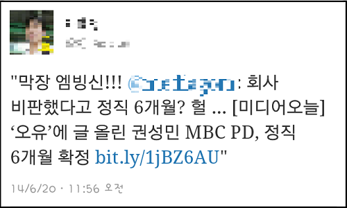 트위터 등 SNS상에서도 “MBC가 공포정치 본격화에 나섰다”, “막장이다”는 등의 비난이 쏟아졌다.