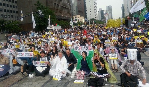 세월호 침몰 참사 67일째를 맞은 21일 서울 청계광장에서 세월호 참사 희생자들을 추모하기 위한 6번째 촛불집회가 열렸다.