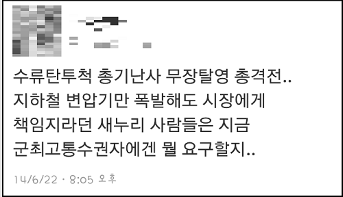 군의 이 같은 조치에 일각에서는 국민의 안전을 최우선으로 해야 하는 군이 제때 조치를 취하지 않은 것은 문제라며 군의 지나친 기밀주의가 국민의 생명을 위협하고 있다고 지적했다.