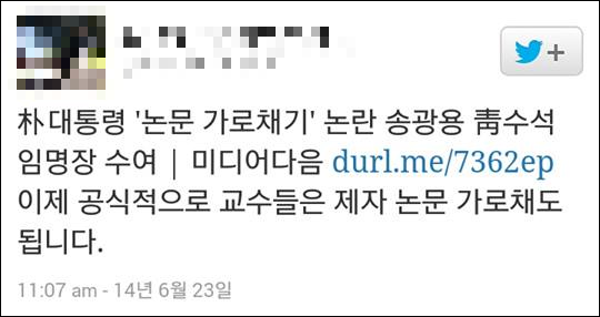 논문 가로채기 및 중복게재 등으로 자격논란을 불러왔던 송 신임 교육문화수석에 임명장이 수여됨에 따라 비슷한 논문 시비가 일었던 정종섭 안전행정부 후보자와 김명수 교육부 장관 후보자에 대한 임명도 강행될 것으로 보여 네티즌들의 비난이 이어지고 있다.