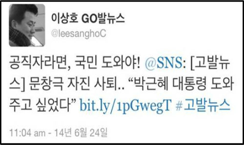 문창극 국무총리 후보자가 논란 끝에 결국 자진사퇴를 하며 “지금 시점에서 제가 사퇴하는 것이 박근혜 대통령을 도와드리는 것이라고 판단했다”고 이유를 밝혀 SNS 등에서 또한번 화제가 되고 있다.