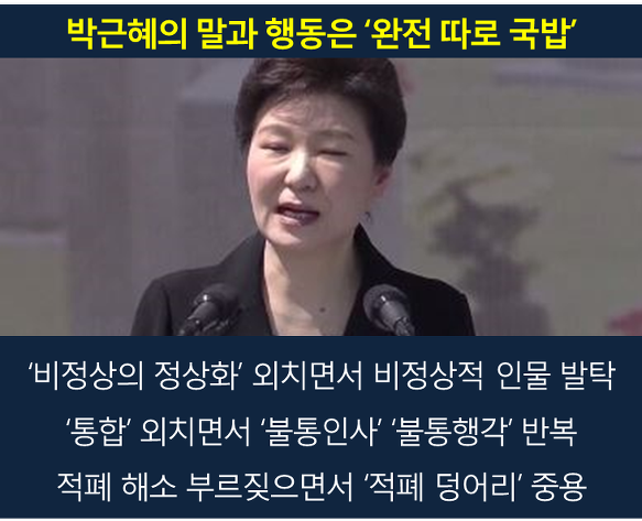 ‘적폐 수석들’ 임명을 강행에 이어 ‘적폐 장관 내정자들’에 대한 인사청문회 또한 밀어붙일 기세다. 난 데 없이 ‘문창극 조부는 독립유공자’라는 기사가 봇물을 이루는 걸 보니 ‘문창극 임명동의안 재가’ 역시 강행하려는 모양이다.