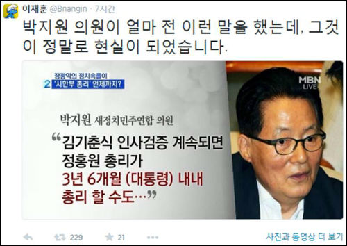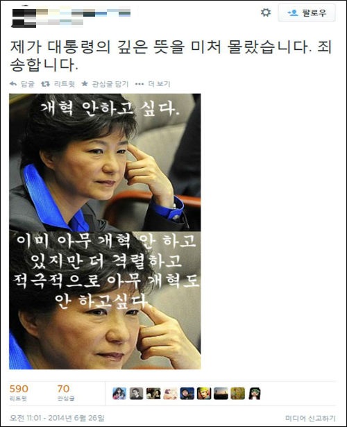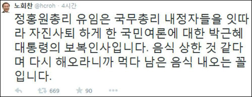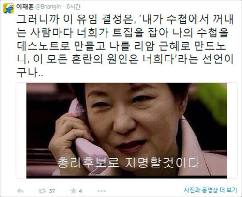 정 총리의 유임을 결정한 박 대통령을 비꼬는 합성 사진들도 잇따라 게시되는 등 정 총리의 후폭풍은 좀처럼 사그라지지 않고 있다.