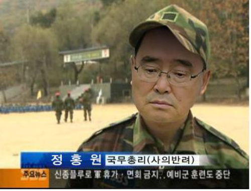 또한 한 온라인 커뮤니티에는 “제대하려다 말뚝 박게 생긴 정 총리”라는 제목의 게시물이 올라오며 이같은 합성사진이 게시되기도 했다.