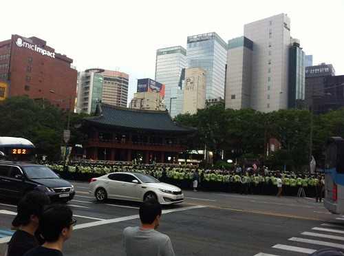 앞서 이들은 오후 5시 청계광장에서 ‘쌀개방.민영화 반대, 세월호 참사 진상규명’ 등을 촉구하는 시국대회를 열었다.