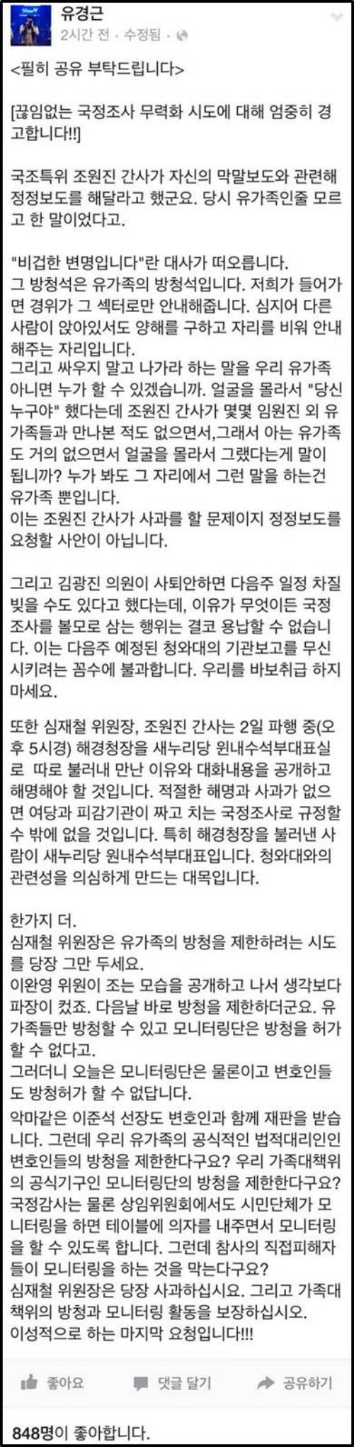- [SNS] 세월호 국조 파행.. 피해 가족 가슴에 ‘피멍’