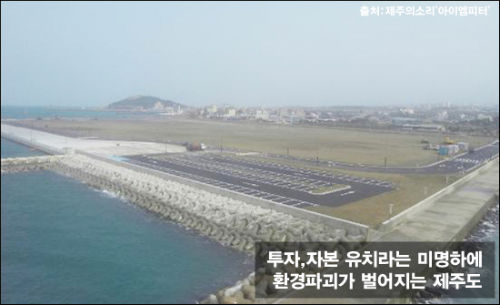 이호해수욕장 주변 공유수면 매립 공사 당시, 제주 시민단체와 환경단체는 환경 파괴에 대한 우려를 계속 제기했습니다. 그러나 이런 시민들의 목소리는 ‘투자’, ‘자본유치’, ‘경제 활성화’라는 명목하에 무시됐습니다.