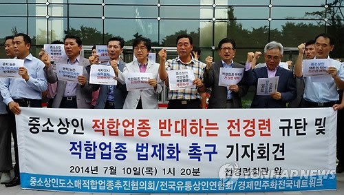 이런 상황에서 전국의 골목상권을 움직이고 있는 중소상인들이 뿔이 나지 않는다면 말이 안 되겠지요. 이들은 대기업만 편애하고 있는 동반위와 전경련을 싸잡아 규탄하며, 법적 지위를 인정받지 못해 불안하기만 한 지금의 제도를 아예 법제화하여 중소상인들을 보호할 수 있는 특별법 형태로의 법률 제정을 촉구하고 나섰습니다. 하지만 해당 특별법은 이미 2012년에 발의된 바 있지만 2년째 국회에서 계류 중에 있습니다.