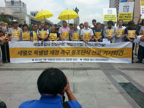 새누리당에 대한 비판도 이어졌다. 가족대책위는 “정치권은 6월 임시국회에서 핵심적 요구는 빼고 엉뚱한 내용만 논의하고 합의하다 끝냈다”며 “정치권이 모두 국민 앞에 석고대죄해야 하고, 특히 수사권조차 줄 수 없다고 버티는 새누리당은 심판받아 마땅하다”고 맹비난했다.