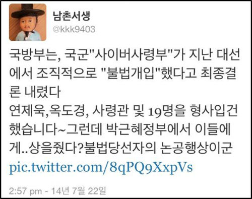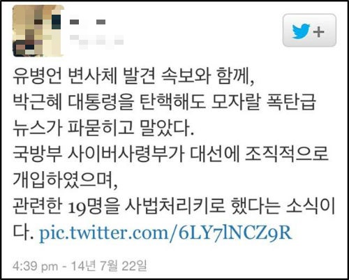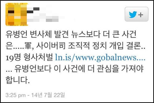 유병언 전 세모그룹 회장의 시신 발견을 두고 언론 보도가 계속해서 쏟아지는 가운데, 네티즌들은 군 당국이 사이버사령부의 ‘정치 관련 댓글’ 의혹에 대해 ‘조직적 정치 개입’ 결론을 내린 뉴스가 제대로 보도되지 못한다고 언론을 질타했다.