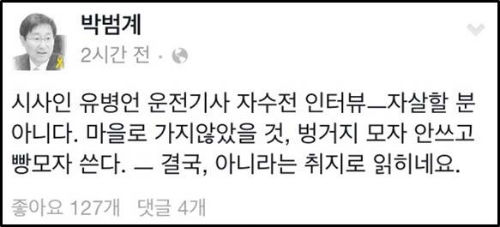 한편, 박범계 의원은 자신의 SNS에도 ‘유병언 시신’에 대한 의혹을 제기하는 글들을 게시하기도 했다.