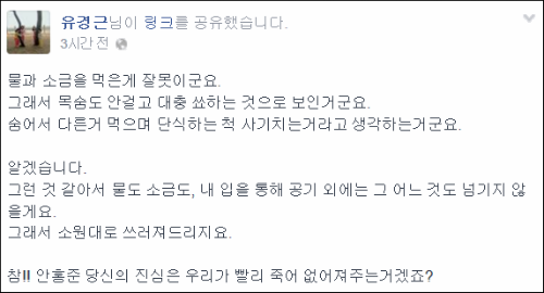 - [SNS] 홀로 단식중인 “유민이 아빠를 응원해 주세요”
