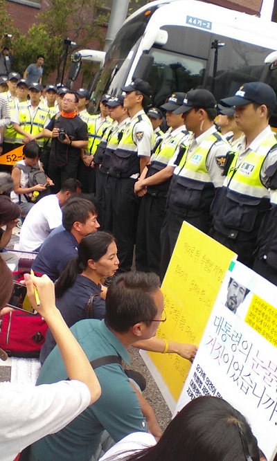 한편, 세월호 유가족들을 비롯한 ‘416 광화문 국민농성단’은 기자회견을 마친 후 박근혜 대통령에 면담을 요청하러 청와대로 향하다 경찰에 의해 제지, 현재 대치중이다.