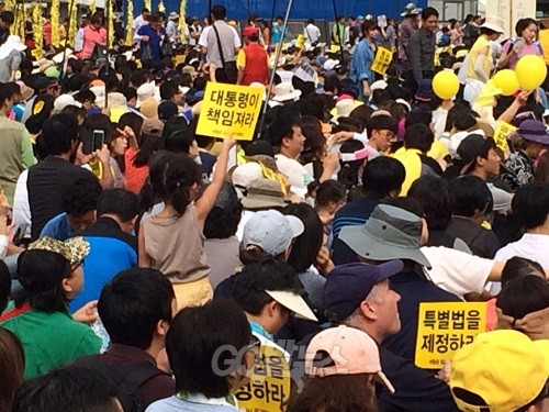 15일 오후 4시 2분경 고등학생 최준호군이 시청앞 광장에서 열린 범국민대회 연단에 올라 "새누리 민주연합이 청소년들을 깔보고, 이제는 생명조차 지켜주지 않는다"며 "중고생들이 단결해야 한다"고 주장했다.