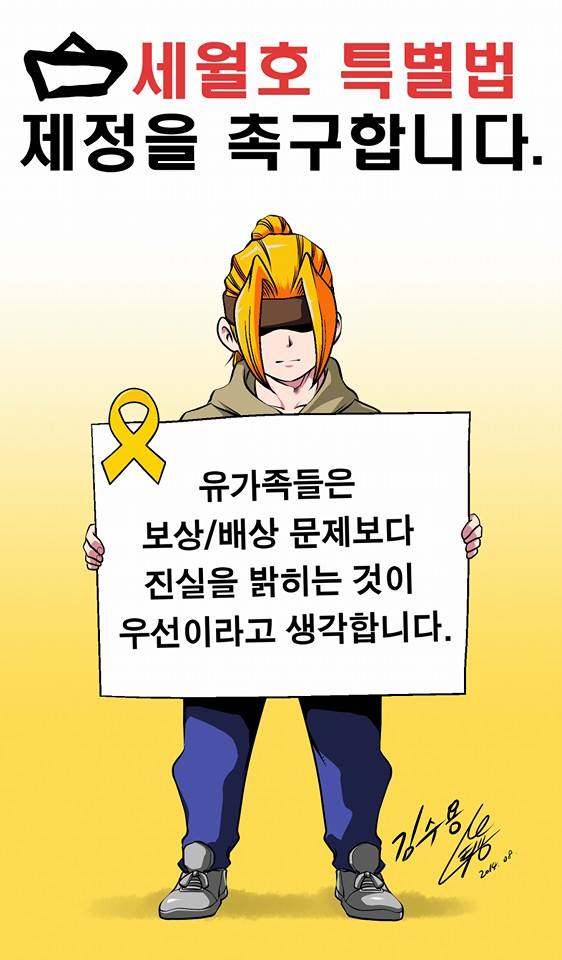 인기 만화작가들이 제대로 된 세월호 특별법 제정을 촉구하며 자신들이 각자 연재하는 웹툰 캐릭터를 활용, ‘특별법 지지 웹툰’을 대거 공개했다.