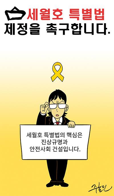 주호민 작가는 자신의 SNS에 이같은 작품을 게시하며 “한 아이의 아버지로서 세월호 특별법 제정을 촉구합니다”라는 글을 게시하기도 했다.