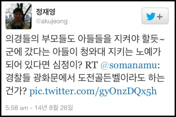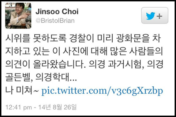 또 “괴기스럽다. 이런 발상과 지시가 통하는 세상이라니”(@mep****), “저 귀한 사람들을 왜 이렇게 망치는 것일까요. 억울한 생명들, 부족한 걸까요”(@urs****), “2014년 대한민국의 참담한 현실”(@seo****)이라며 경찰 지휘부를 비판했다.