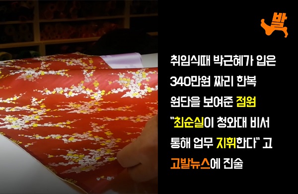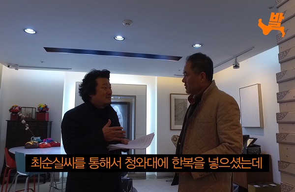 고발뉴스는 지난 1월 박근혜 취임식 한복을 최순실씨에게 납품했던 김영석 디자이너를 인터뷰했습니다. 박근혜와 최순실의 기묘한 관계를 파헤치는 영화 <대통령의 7시간> 제작의 일환이었습니다. 김영석씨는 이후 최순실씨에 의해 국기문란 상징이 돼 버린 미르재단의 이사로 발탁되는 등 승승장구 하더군요.