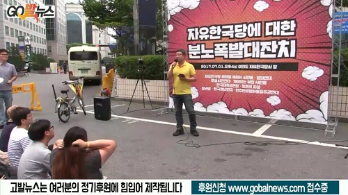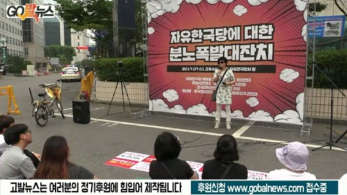 ‘자유한국당 해체’ 촉구 주말 집중 집회가 7월의 첫날 자한당 당사 앞에서 100여명의 시민들이 참석한 가운데 진행됐다. 이날로 13일차를 맞은 규탄집회는 ‘자유한국당에 대한 분노폭발대잔치’란 주제로 ‘적폐세력으로부터 피해를 입은 시민’들의 증언대회로 열렸다.