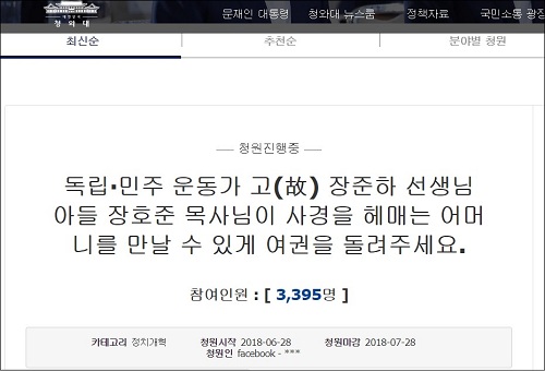 장호준 목사 여권발급 국민 청원.. “사경 헤매는 母 만날 수 있게 도와주세요”