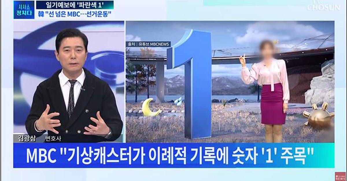 같이 출연했던 김광삼 변호사는 ‘기상캐스터, 피디, 제작진’이 민주당에 확증편향을 가진 사람들로 “계획적으로 의도했다”고 주장했는데요. MBC 일기예보가 민주당을 위한 선거운동이라고 확신하며, 1번을 강조한 것은 ‘유아틱한 발상’이며 ‘철부지 같은 행동’이라고 비난했습니다.