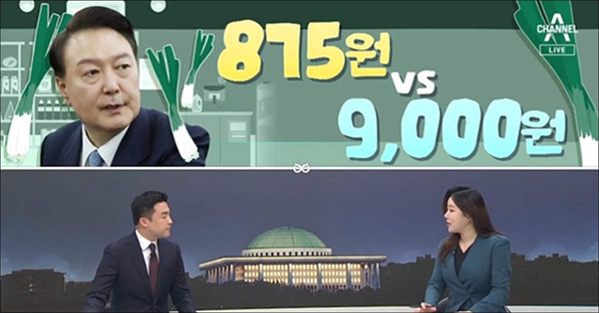 채널A <여랑야랑/875원 VS 9,000원>(3월 20일 윤수민 기자)은 “윤석열 대통령이 물가 점검을 나섰을 때의 대파 가격(875원)”이나 “(신현영 더불어민주당 대변인이 말한) 대파 한 단에 9,000원” 모두 농산물 소비자가격 사이트에서 알아본 대파 평균가격에 따르면 틀렸다며 “총선 전쟁이 이제는 물가 전쟁으로도 번진 것” 같다고 분석했습니다.